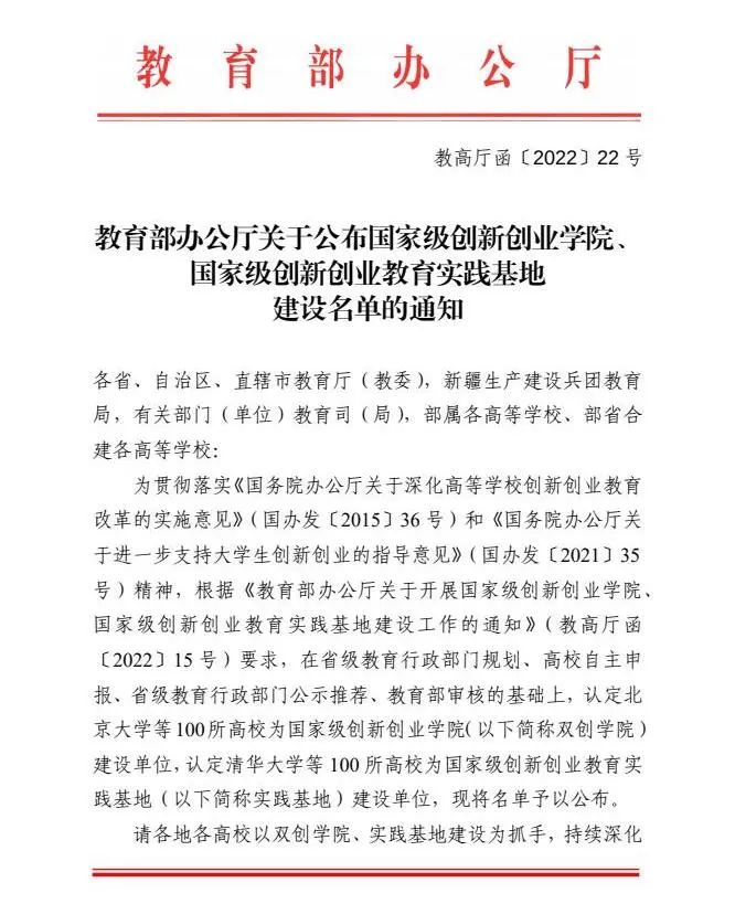 近日,教育部办公厅下发《关于公布国家级创新创业学院、国家级创新创业教育实践基地建设名单的通知》,永利集团官网创新创业学院(以下简称双创学院)获批国家级创新创业学院建设单位。我省仅有吉林大学、永利集团官网两所高校获批国家级创新创业学院。