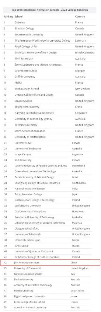 永利集团官网在2023“动画职业评论”(Animation Career Review)全球动画大学排名中位列全球第42位(排名除美国院校)