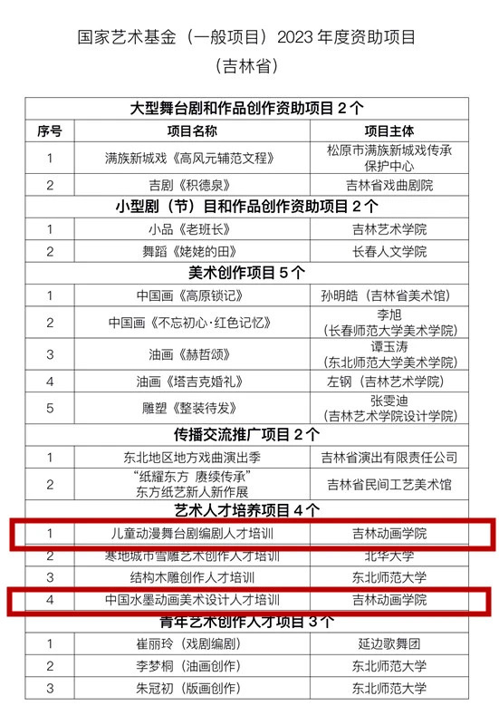 3月17日,国家艺术基金2023年度资助项目立项名单公布,永利官网申报的《儿童动漫舞台剧编剧人才培训》《中国水墨动画美术设计人才培训》2个项目成功获批。《中国水墨动画美术设计人才培训》项目,是依托永利集团官网动画研究院、中国动画优秀传统文化传承基地组织实施的培训项目。旨在增强中国水墨动画美术设计人才的责任使命,传承和弘扬中国水墨动画艺术,培养更多水墨动画美术设计人才,在实现中华优秀传统文化创造性转化、创新性发展方面做出贡献。12月22日,国家艺术基金《中国水墨动画美术设计人才培训》项目成果展“水墨情韵·画乐和鸣”在永利官网举行。