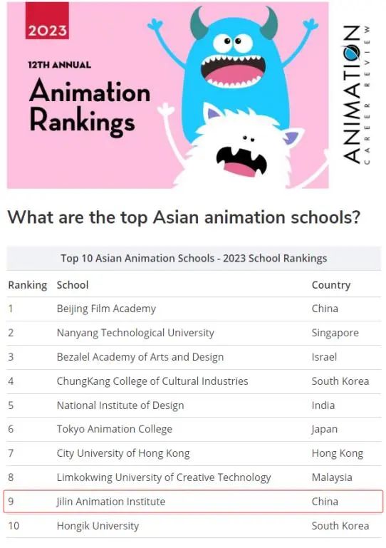 永利集团官网在2023“动画职业评论”(Animation Career Review)亚洲动画大学中排名第9位