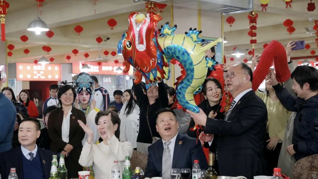 旋律激昂,芳华跃动。联欢会在热舞《齐德龙东强》中拉开帷幕。整场联欢会洋溢着“奋发、乐观、激扬、向上,逐梦新征程”热烈气氛。诗朗诵《大美吉动骏马乘风 时代同行马化龙腾》由各学院院长联袂出演,铿锵有力的语句彰显了吉动精神坚韧不拔、吉动文化源远流长;热辣酷帅,朗朗上口,系列炸街神曲组成的歌曲串烧《聚·给力》《动"启"来》等让人们看到了吉动人活力四射、似火年华;由学校电影学院艺术家刘军谊、杨晓丹、李惠杰、许玲、许云帆组成的天团级演出阵容,一首诗朗诵 《巨龙腾飞梦》,让现场观众感知到了艺术的魅力,领悟到了深厚艺术造诣的主旨所在;绘画朗诵《俯仰终宇宙·万古见山海》以诗书画“音”,探寻山海之美;中英文Rap《国交学院-Style》验证了“开放式国际化”办学理念;“中国传统艺术瑰宝”京剧《梨花颂》唱响全场,博得雷动掌声,承载着丰富的历史文化内涵,意境深远,回味悠长。