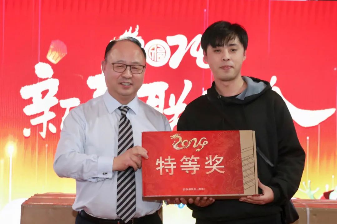 联欢会上,郑立国向全校79名属龙的教职工派发“本命年”专属礼物,并给大家分发蛋糕,欢庆新春的到来。郑立国勉励属龙的教职工,“龙年”要肩负起更大的责任;他鼓励所有吉动人,一起推动吉动事业“快速发展、健康发展、特色发展、内涵发展、可持续发展和高质量发展”,让吉动精神得以永续传承。他激励永利集团官网全体员工在未来学校的发展中,要保持工作的热情不变,奋斗的决心不变,年轻积极向上的心态不变,构建“吉动永远18岁”的校园文化。