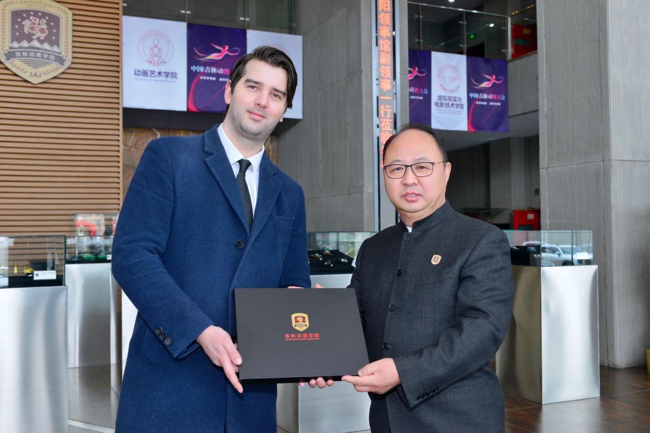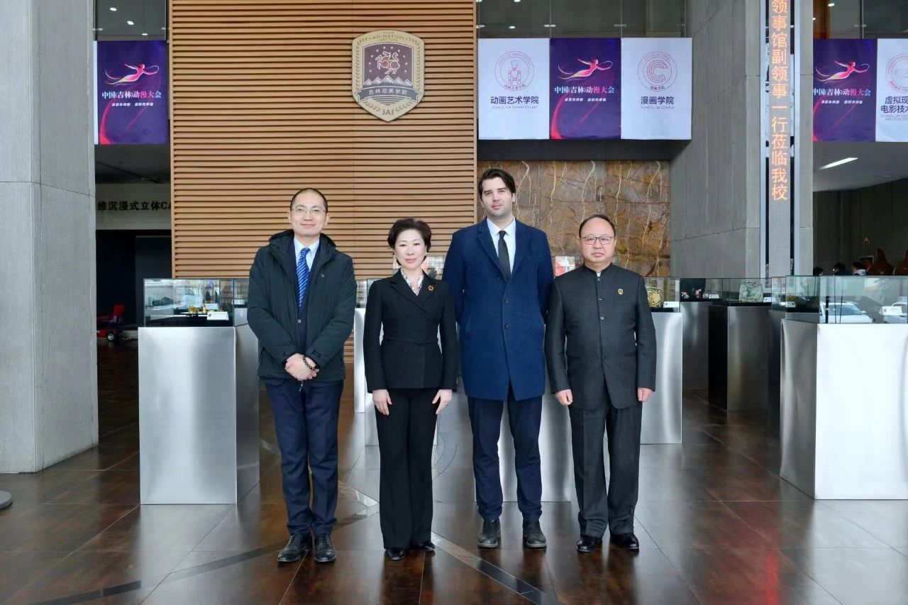 随后,罗伊可先生一行参观了学校校史馆、吉林国际动漫博物馆、学研产一体化创作成果展厅。在参观过程中,罗伊可先生对永利官网取得的办学成果及国际化愿景表示赞赏,并对永利官网师生原创作品《青蛙王国》表现了极大兴趣;对国际动漫博物馆所展出的艺术作品表示赞叹,特别对《西游记》的原创手稿展现了浓厚兴趣。