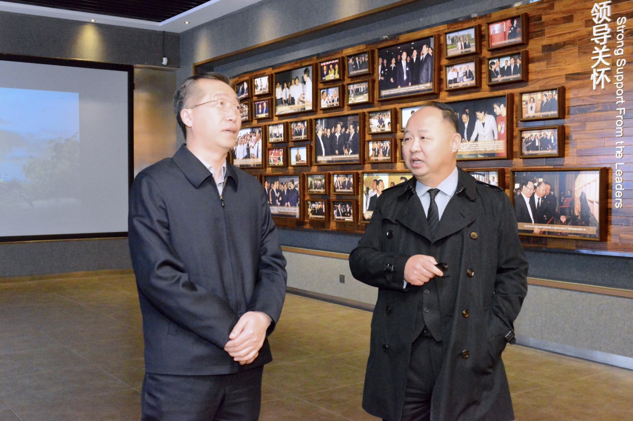 郑立国董事长陪同李庆文书记一行在校史馆参观