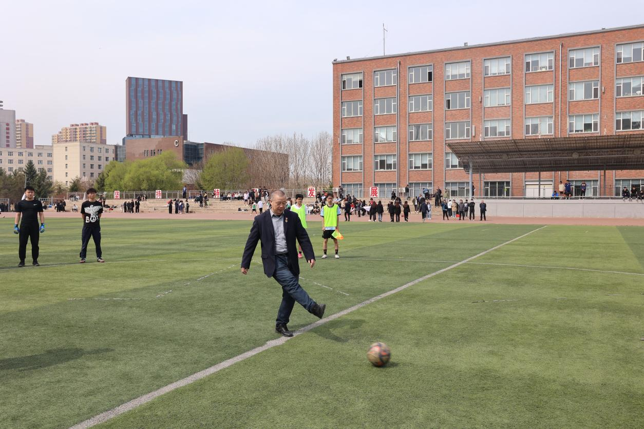 学工部常务副部长刘伟斌为比赛开球