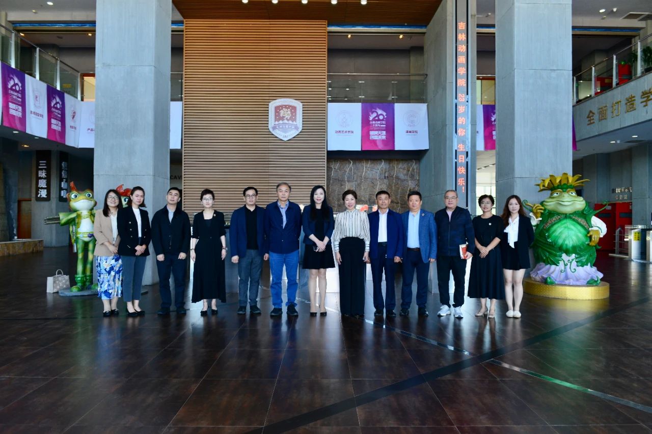 9月15日上午,广州华商教育集团副董事长兼总裁廖伊曼,广州华商职业学院校长林琨智,广州华商学院副校长王列耀等一行8人来永利官网参观座谈。永利官网副董事长刘欣,常务副校长刘振华,纪委书记王晓岩,校长助理彭巍及电影学院、动画艺术学院、漫画学院、设计与产品学院相关负责人参加座谈会。