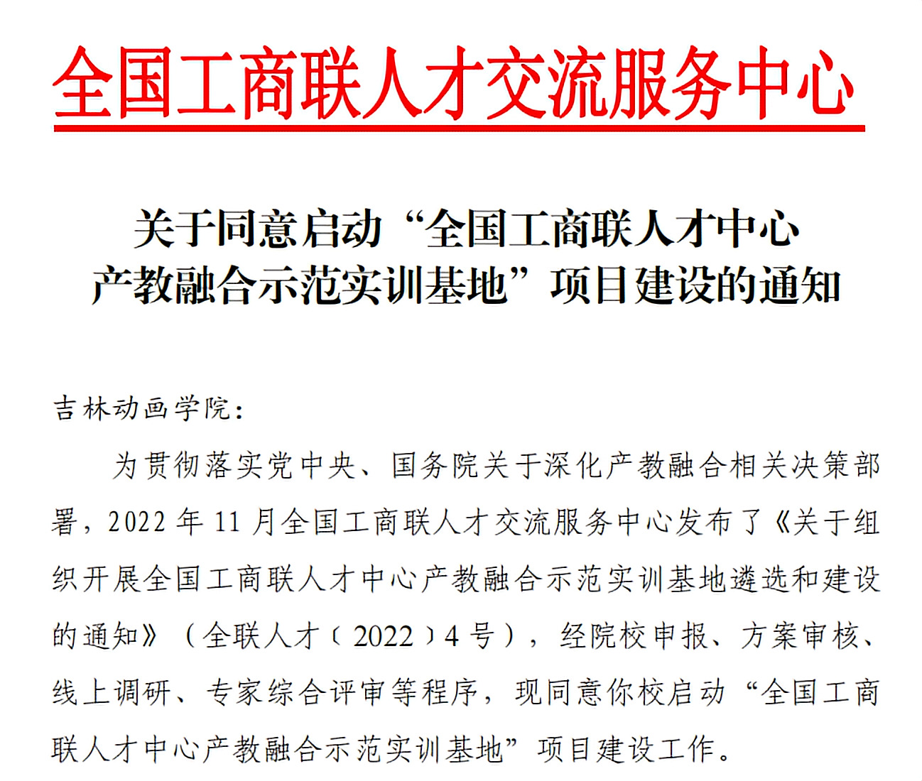 2022 年 11 月全国工商联人才交流服务中心发布了《关于组织开展全国工商联人才中心产教融合示范实训基地遴选和建设的通知》(全联人才﹝2022﹞4 号),经院校申报、方案审核、线上调研、专家综合评审等程序,永利集团官网正式获批“全国工商联人才中心产教融合示范实训基地”。