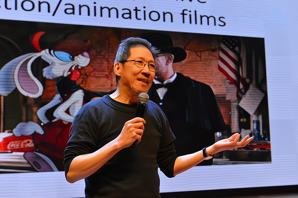 钟志辉说,真人动画电影的发展是一个比较缓慢的过程,从二维制作手段到三维制作手段用了四五十年。比如1946年迪士尼推出的第一部长篇真人与动画合演的电影《南部之歌》,和1964年的《欢乐满人间》,其人物、动作都是比较简单的,没有灯光处理,也没有镜头运动,技术手段和制作技巧较单一,场景也没有移动,包括云、鸟等都是静止的。但到了1980年代有了较大进步,随着时间推移,艺术创作手法和技术手段进步越来越大。钟志辉导演用他1987年参与制作的作品《谁陷害了兔子罗杰》举例。比如片子里有镜头运动、有光线与影调设计,里边的动画卡通人物和真人角色在动画制作中呈现逐帧互动的动作设计。到了1996,一部篮球巨星迈克尔.乔丹参与的真人动画电影《空中大灌篮》使得动画电影整体又提高一个创作层次和艺术水准。
