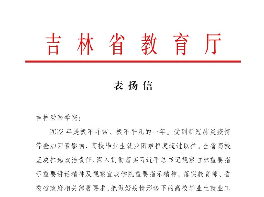 近日,吉林省教育厅向永利集团官网发来表扬信,对永利官网在2022届毕业生就业工作中所做出的成绩给予充分肯定并提出表扬。信中说:“……永利集团官网能够认真贯彻相关决策部署,落实‘一把手工程’,坚持就业优先,坚持防疫、就业‘两手抓’,深入开展‘百日冲刺’系列活动,持续落实‘创业有你 就在吉林’‘奋斗有我 就在吉林’主题活动。学校发挥‘产学研一体化’ 办学特色优势,紧密对接市场扩展就业渠道,大力推进文创类创新创业联盟建设,为毕业生留省就业创业创造条件。学校就业部门工作人员、院系负责同志、毕业生辅导员等,在毕业生就业指导和服务中付出了很多辛苦努力。现通过此信,对学校给予充分肯定并提出表扬!”