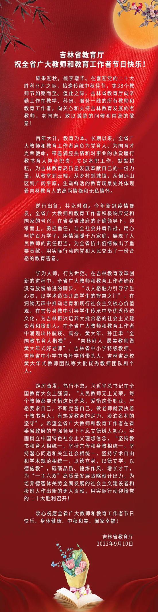 【JAI·新】吉林省教育厅祝全省广大教师和教育工作者节日快乐!