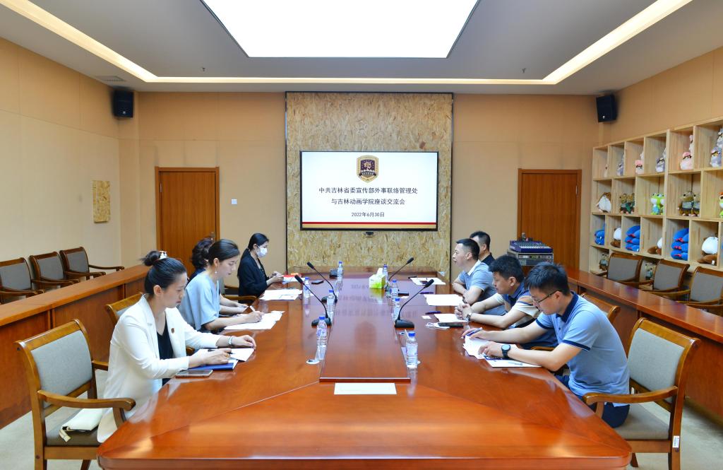 6月30日,省委宣传部外事联络管理处处长白宇、副处长米山,吉林省对外文化交流协会秘书长李扬等一行来校访问,副董事长刘欣、国际合作发展中心常务副主任鲍怡萍接待来访团。