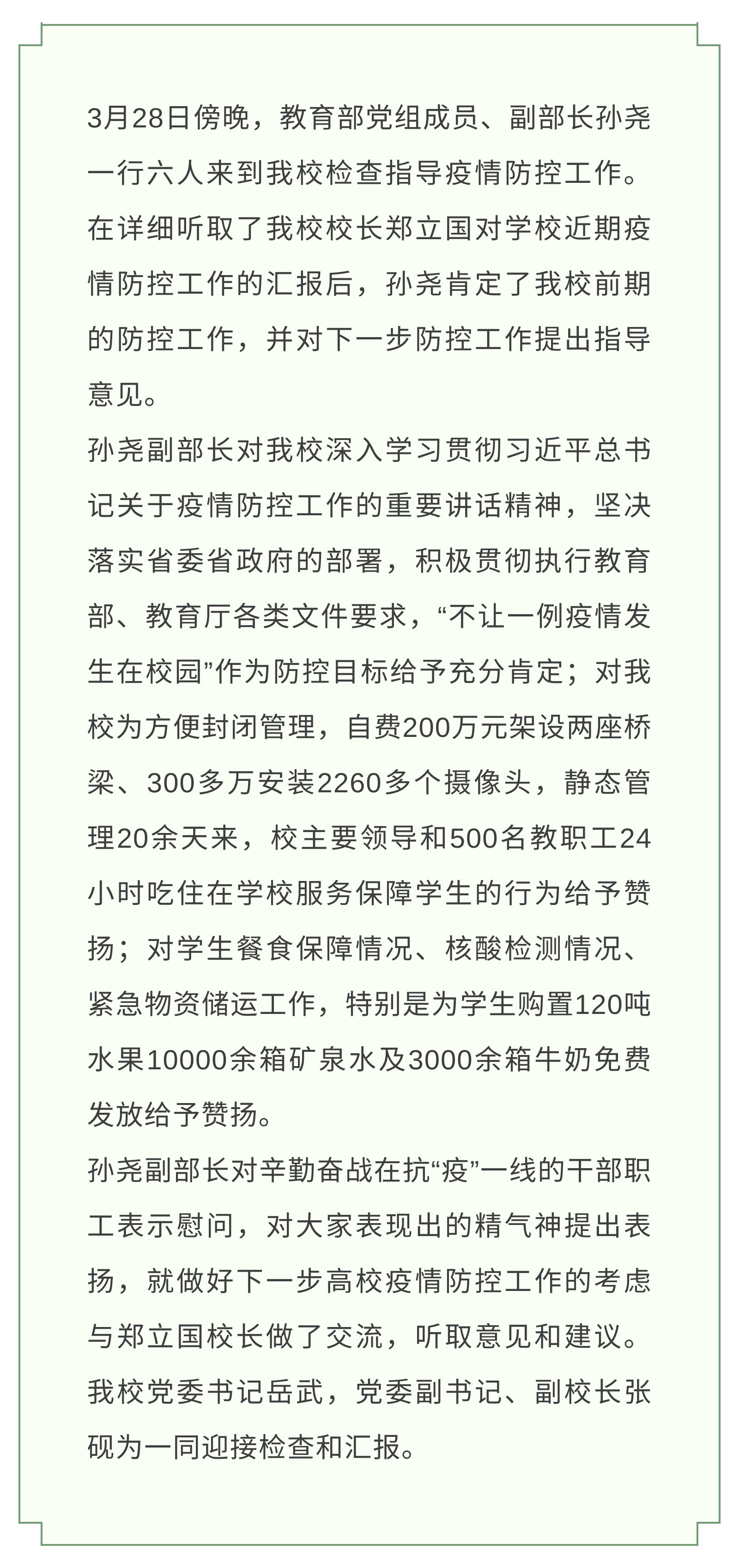 【JAI·防“疫”】教育部副部长孙尧到永利官网巡视指导疫情防控工作