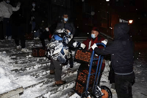 此外,学校高度重视学生的心理和身体健康,担心学生在校封闭期间闷在寝室会产生心理焦虑和营养失衡,马上组织老师成立心理辅导工作组,缓解学生心理压力。并且紧急从市场上外购60吨水果,9600箱矿泉水,免费发放给在校学生保证他们基本营养需求。学生们看见员工们顶风冒雪一箱一箱把30多斤的橘子扛到宿舍楼,汗流浃背的身影和付出感动了身边的同学,网名“盖饭不浇”的吉动学子在推文评论中写到:想起昨天晚上在宿舍正好看到后勤叔叔们在运水果,因为雪太厚路太滑,一个大叔艰难地将装满橘子的小推车一步步推过来,突然车滑了,橘子散一地,他们弯腰赤手把橘子一个个从雪里捡起来......天这么冷,还飘着雪......那一瞬间就突然很破防,后勤的叔叔阿姨还有其他工作人员、志愿者们,感恩有你们,你们辛苦了!