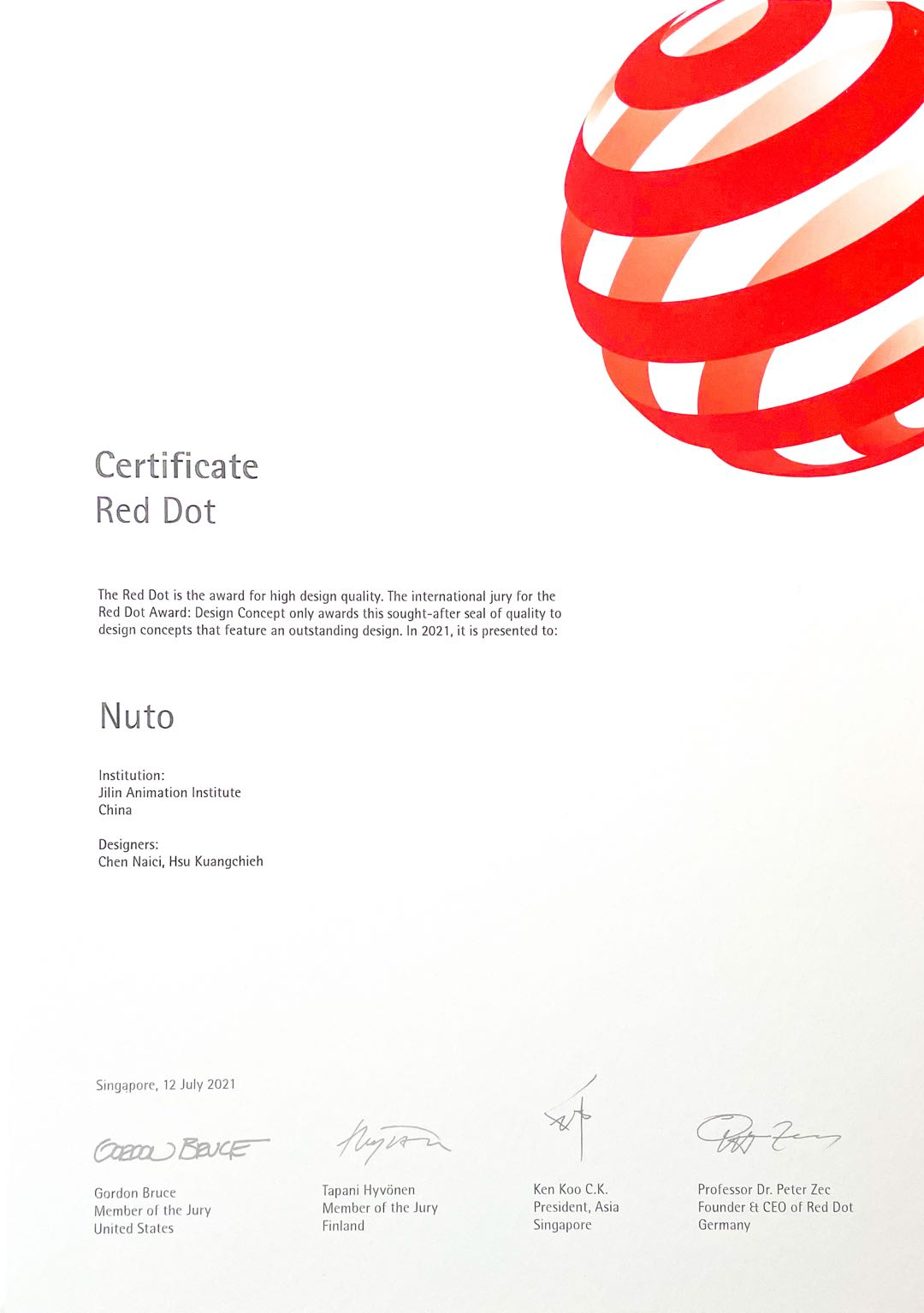 据悉,今年永利集团官网设计与产品学院所申报的作品全数入围决赛;近期,官方公布了最终决赛成绩,其中许光杰、陈乃慈两位老师的作品《NUTO(创意固态饮品制作套装)》获得红点概念设计奖(2021 Red Dot Award-Design Concept)!