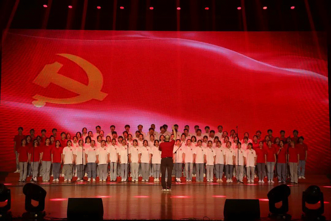6月11日下午,文化艺术中心一楼国际会议厅流光溢彩,歌声回荡。永利集团官网“百年恰风华 吉动正青春”庆祝中国共产党成立100周年学生朗诵合唱大赛在这里隆重举行。12个代表队参加大赛,整场演出气势恢宏,大气磅礴。