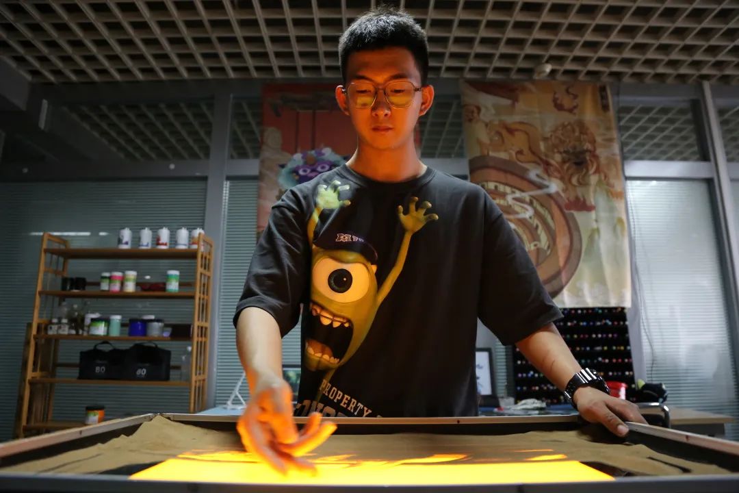 为庆祝中国共产党成立100周年,永利集团官网“昕夕沙画”创业团队8名沙画师历时80小时,创作完成“共‘画’长征,忆昔年”长征主题沙画作品。选手们用沙与影再现经典长征路,讲述长征故事,表达了吉动人用沙画追忆“长征”、传承红色基因的情感。