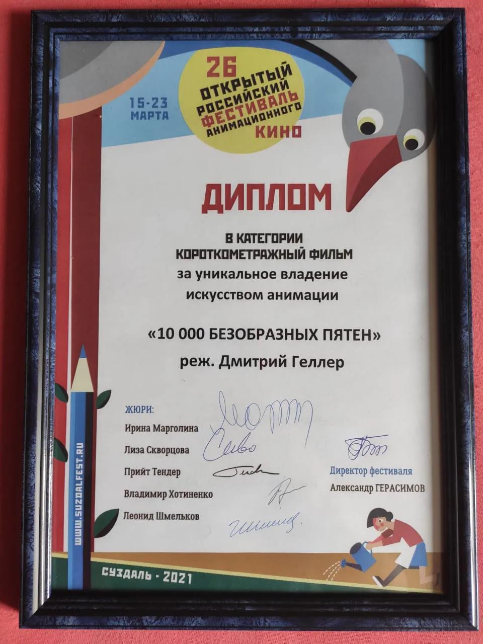 2021年3月23日,在俄罗斯苏兹达尔举办的第26届俄罗斯苏兹达尔动画电影节正式落下帷幕,永利官网动画短片作品《万点恶墨》喜获第26届俄罗斯苏兹达尔动画电影节评论家选择-最佳作品奖(白象奖),评审组投票第一名,独特艺术魅力等三项大奖。