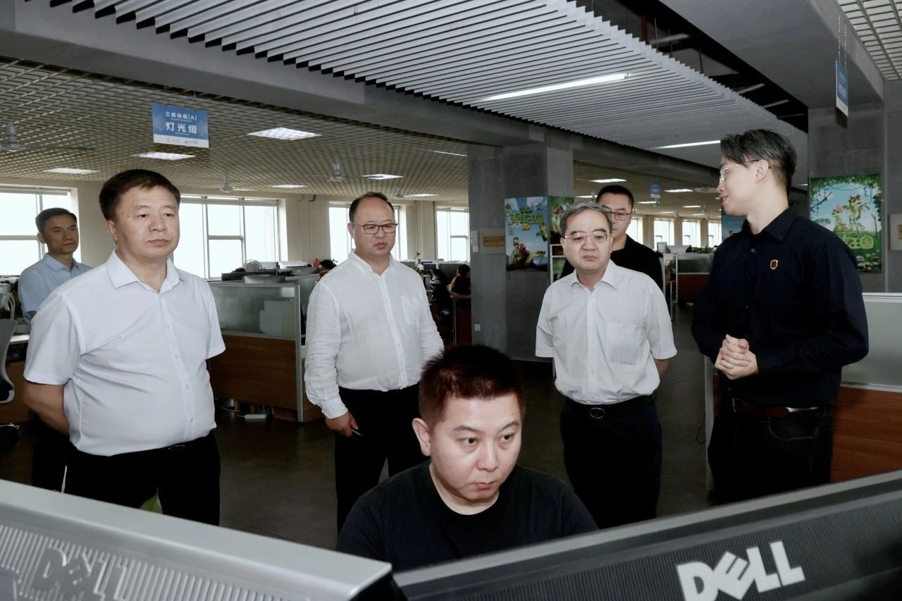 在参观学校实践教学平台和学研产一体化创作成果展厅过程中,调研组实地考察了《山海之战》《新卖火柴的小女孩之芙蕾雅》《传说之影》等动画电影、CG电影的制作过程,并与主创人员进行亲切交流。苟人民询问了实践基地创作团队、学生实践团队建设、生产流程系统及软件开发情况,对永利官网师生原创系列动画大电影《青蛙王国》《疯狂电脑城》等影视作品的创意与制作成果表示赞赏,对于学校在自有知识产权的软著和专利技术取得的成果表示认可。