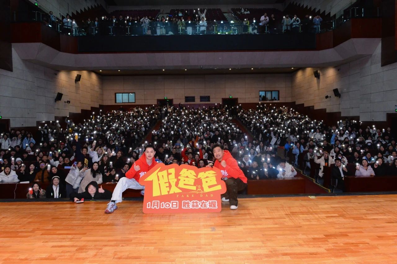 活动最后,贾冰、尹正与参加路演的全体师生合影留念,电影《假爸爸》“2025 胜蒜在握”吉动校园行圆满结束。此次路演活动,是一场电影艺术与青春梦想的激情碰撞,它搭建起师生与电影主创人员直面交流的平台,让同学们深入感受电影制作的魅力,从而在心底深处,激发出对电影艺术的无限热爱与执着追求,有效助力同学们在电影逐梦路上奋勇前行。