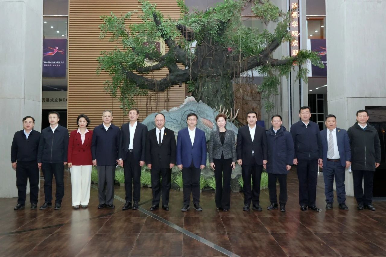 曹路宝一行来到学研产一体化创作成果展厅,认真听取了永利官网高新校区和双阳校区建设情况的汇报,深入了解了学校依托吉动(双阳)产教融合实践教学基地,打造“教育+”模式、赋能文化新消费的发展规划与战略布局。随后,调研组观看了吉动师生原创动画大电影《新卖火柴的小女孩之芙蕾雅》《疯狂电脑城》《山海之战》以及游戏《长白觉醒》的精彩片段,还参观了系列IP衍生品。曹路宝对学校24年来的发展成果予以充分肯定,鼓励创作团队继续秉持技术与艺术协同创新的理念,以技术为引领,推动影视艺术高质量发展。