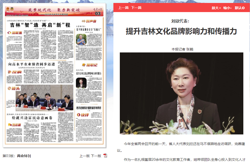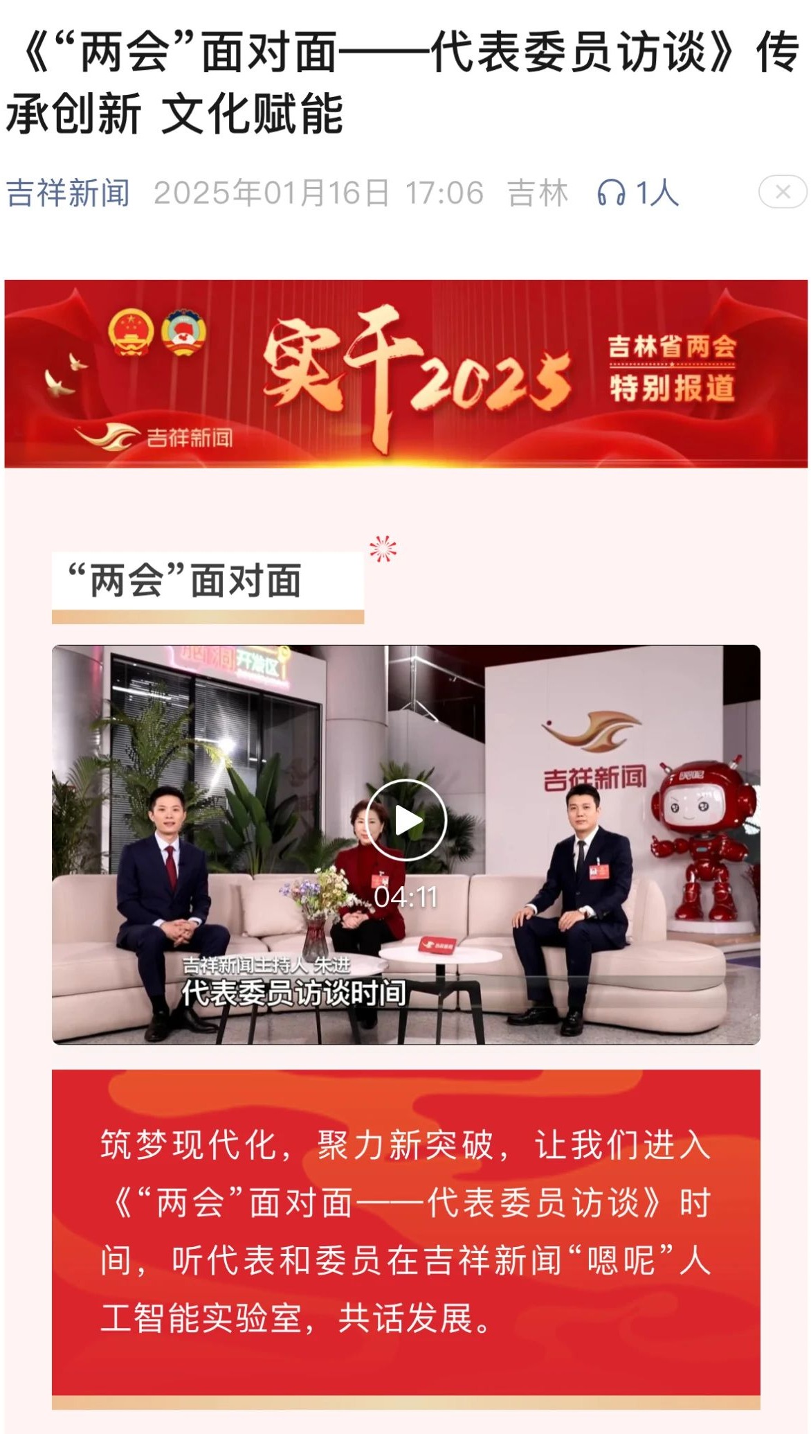 1月14日,吉林省第十四届人民代表大会第四次会议在长春开幕。吉林省人大代表、永利集团官网副董事长、副校长刘欣在会议期间接受了中央广播电视总台吉林总站、吉林日报、中国吉林网记者采访,并做客吉祥新闻《“两会”面对面——代表委员访谈》特别节目,聚焦“人才留吉”“如何用科技赋能历史文化传承”“如何让高校的教育有实效”等议题,进行了深入的探讨。
