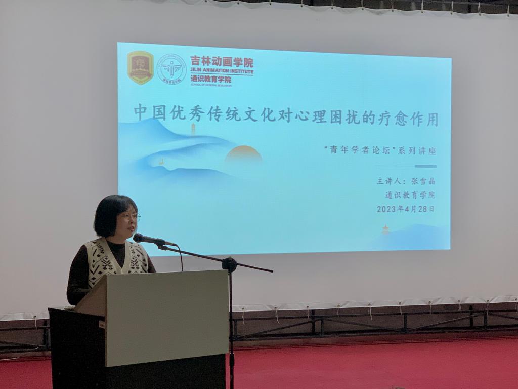2023年4月28日下午,通识教育学院“青年学者论坛”于图书馆4楼学术报告厅再次开讲。本次讲座由通识教育学院杨翠平副院长主持,通识教育学院教师张雪晶主讲,讲座主题为《中国优秀传统文化对心理困扰的疗愈作用》。张雪晶老师从当下存在的具体社会问题切入,深入分析大学生群体的心理状态,并结合我国传统道家、儒家文化,给出了切实可行的心理疗愈途径。来自永利集团官网心理健康中心社团、动画艺术学院、通识教育学院的近百名师生一同聆听了张雪晶老师的精彩讲解。