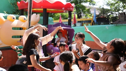 永利集团官网志愿者们与孩子们做游戏