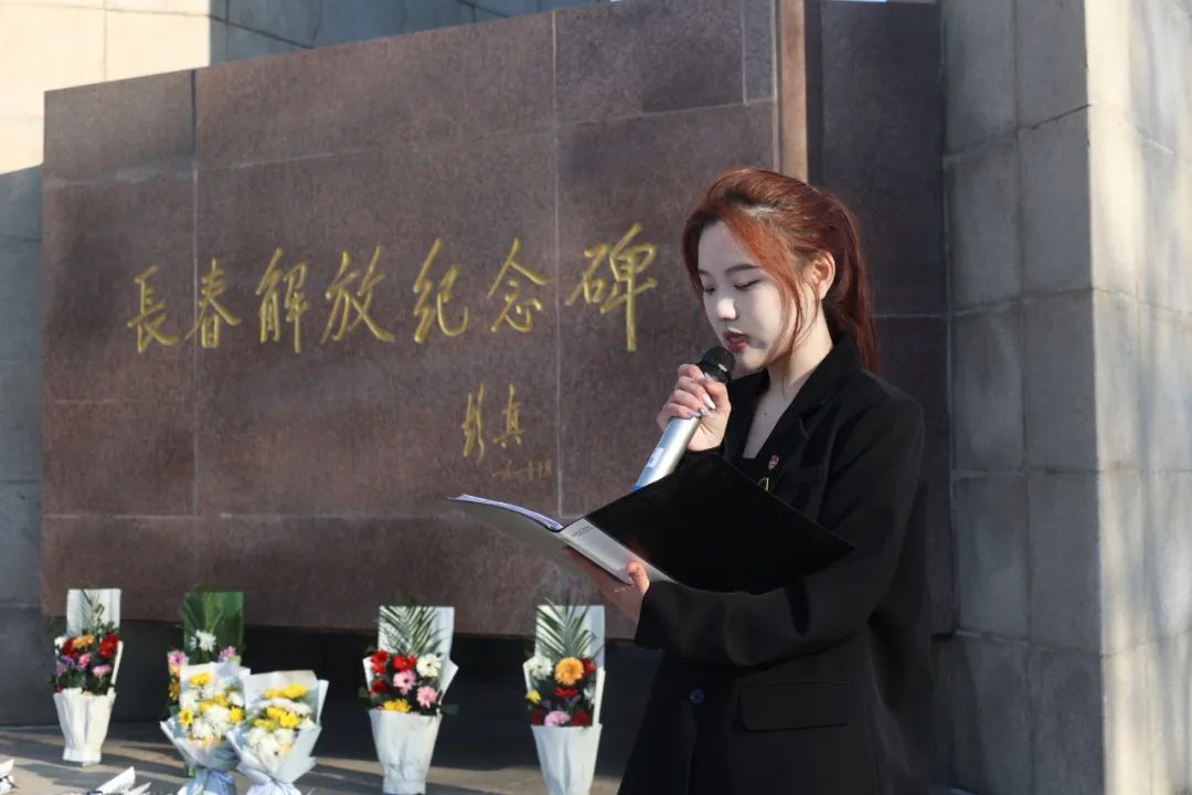 早上7:00,永利官网师生代表们在指定地点站队集合,前往长春解放纪念碑。纪念碑高耸入云,仿佛在诉说着那段峥嵘岁月。师生们奏唱国歌,伴随着主持人主持开场,老师与学生干部们在默哀后上前献花。献花完毕后,校学生会的四位学生干部李文慧,张琪秀慧,赵小娴,蔡龙熙用一场激昂的朗诵,带我们重温了那段难忘的历史,提醒我们要铭记先辈嘱托,让历史的记忆化作奋进的力量,融入中华民族生生不息的精神谱系。