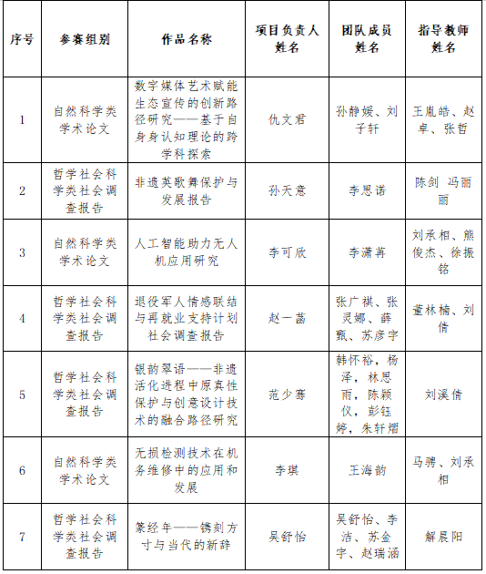 经学校严格审核,作品不存在违反“挑战杯”竞赛主旨及章程、均按照相关竞赛要求上报竞赛内容。现将推荐省赛推荐名单进行公示。