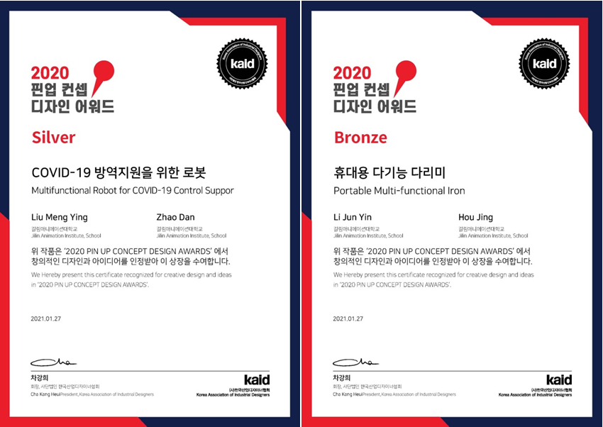永利集团官网产品造型学院学生在韩国举办的2020PIN UP国际概念设计大赛中勇夺银奖和铜奖。