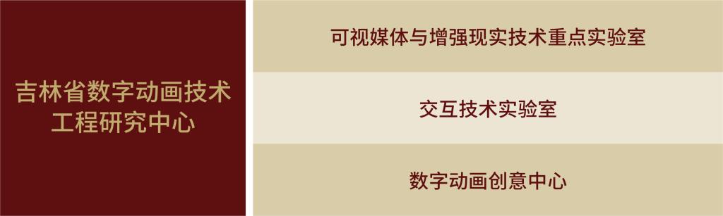 吉林省数字动画技术工程研究中心,2015年获得吉林省发展和改革委员会批准立项建设。中心以“立足吉林、服务全国、打造品牌、走向国际”为发展方针,致力于推动数字动画技术的不断发展,为影视、动画、游戏、广告等产业提供全方位的动画技术支持。中心以数字动画技术创新为主导。围绕可视媒体计算、计算艺术、数字人及动画、AIGC等研究领域,重点研发动画制作技术、智能内容生成技术,智能媒体处理技术以及新一代人机交互技术。研发的项目包括“动画宇宙”“大学生数字创业平台”“高校文创联盟+数字作品管理平台”“吉林省冰雪体验”等。中心围绕数字动画相关技术研究成果共申请国家发明专利3项、获取软件著作权2项、完成标准2项、获批科研项目17项、发表学术论文20余篇。